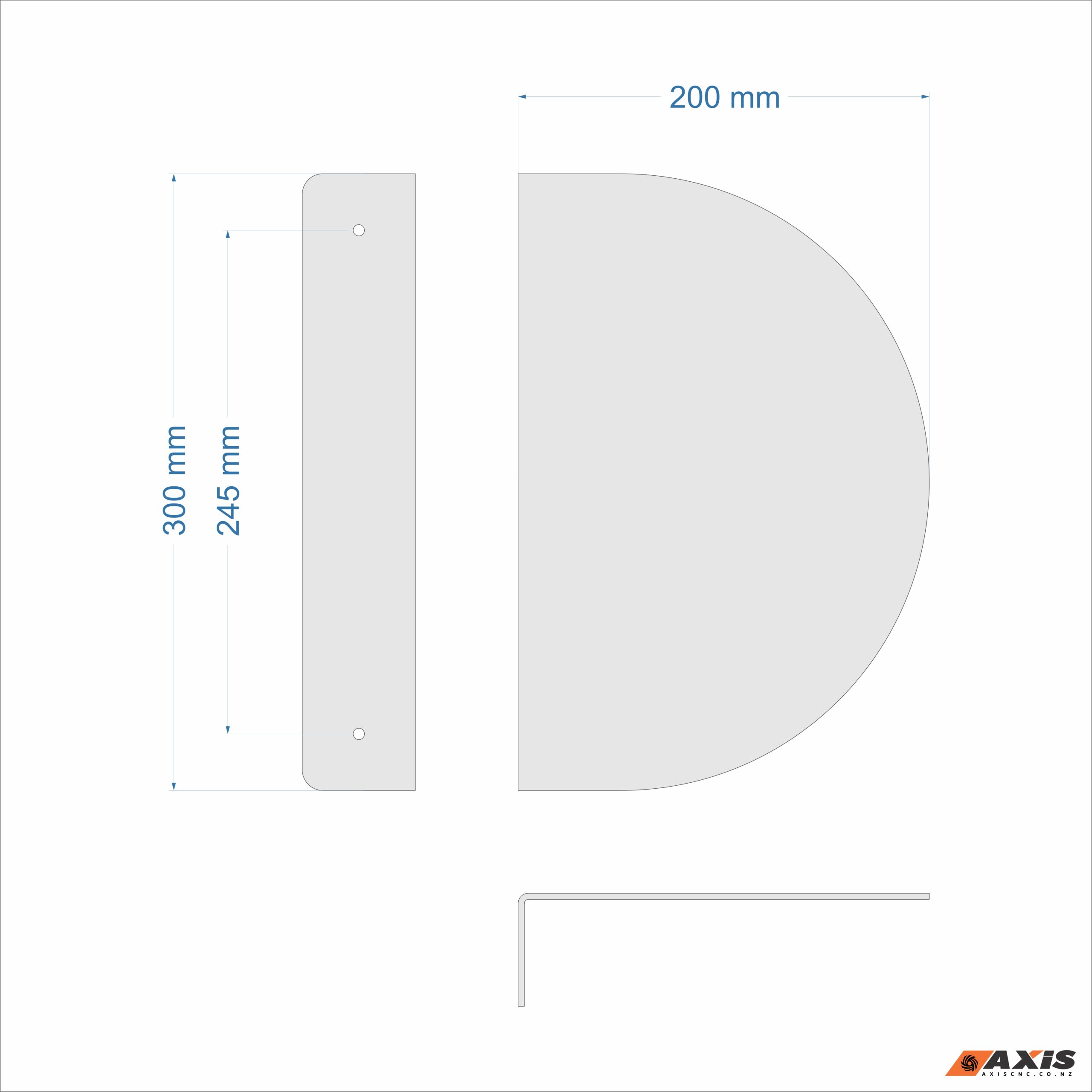 - Half round 300mm x 200mm